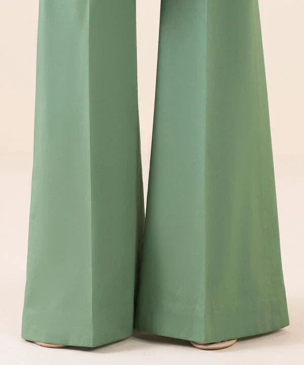 Make a statement with our three-piece embroidered ensemble in fern green featuring a dobby shirt and cotton trousers paired with a matching zari voile dupatta.