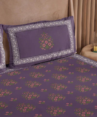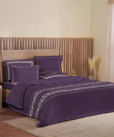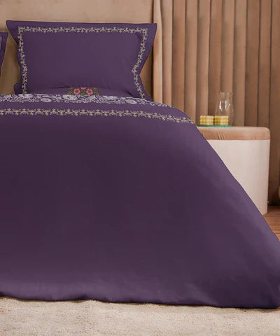 Refresh your winter space with our printed and embroidered Plum Bed in a Bag including a flat sheet, pillow cases, comforter and standard shams.