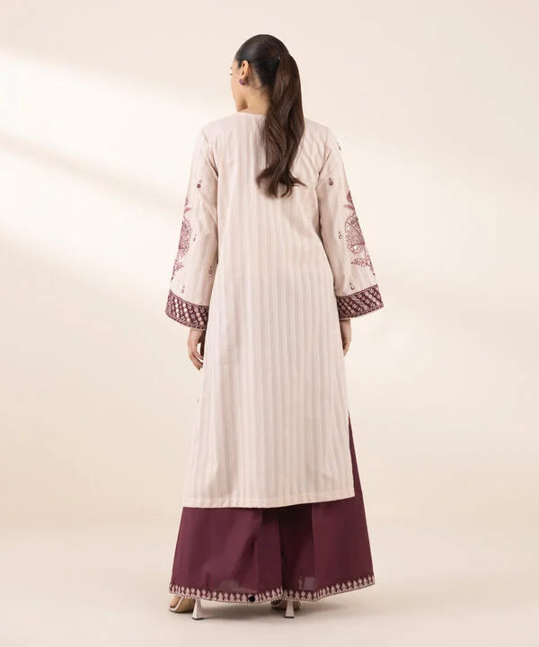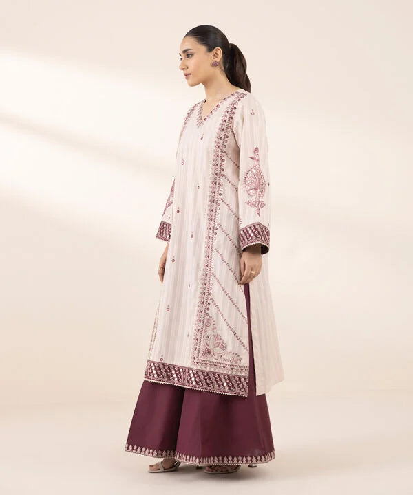 Perfect your festive style with our dyed pink, tilla embroidered A-line shirt featuring a V-neckline.