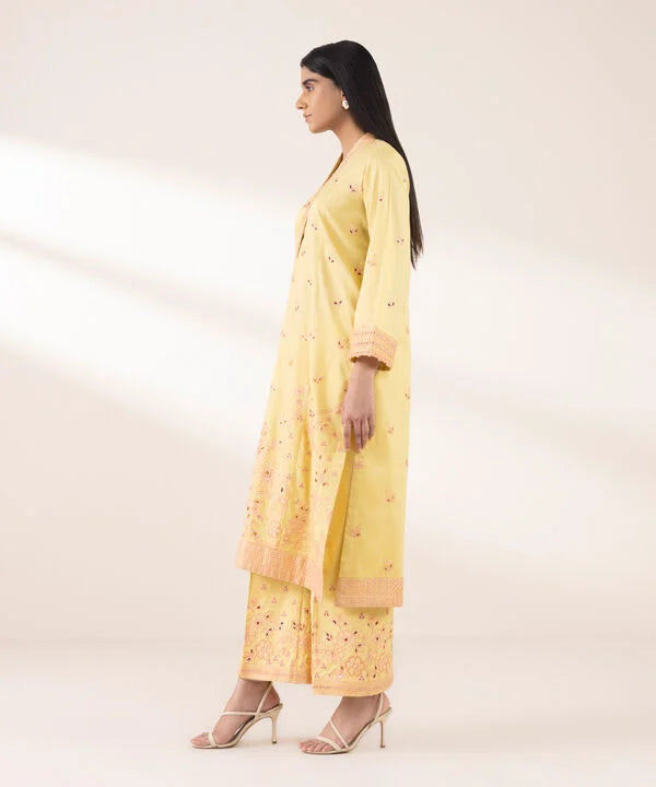 Elevate your style with our yellow, dyed embroidered shirt featuring a Y-neckline.