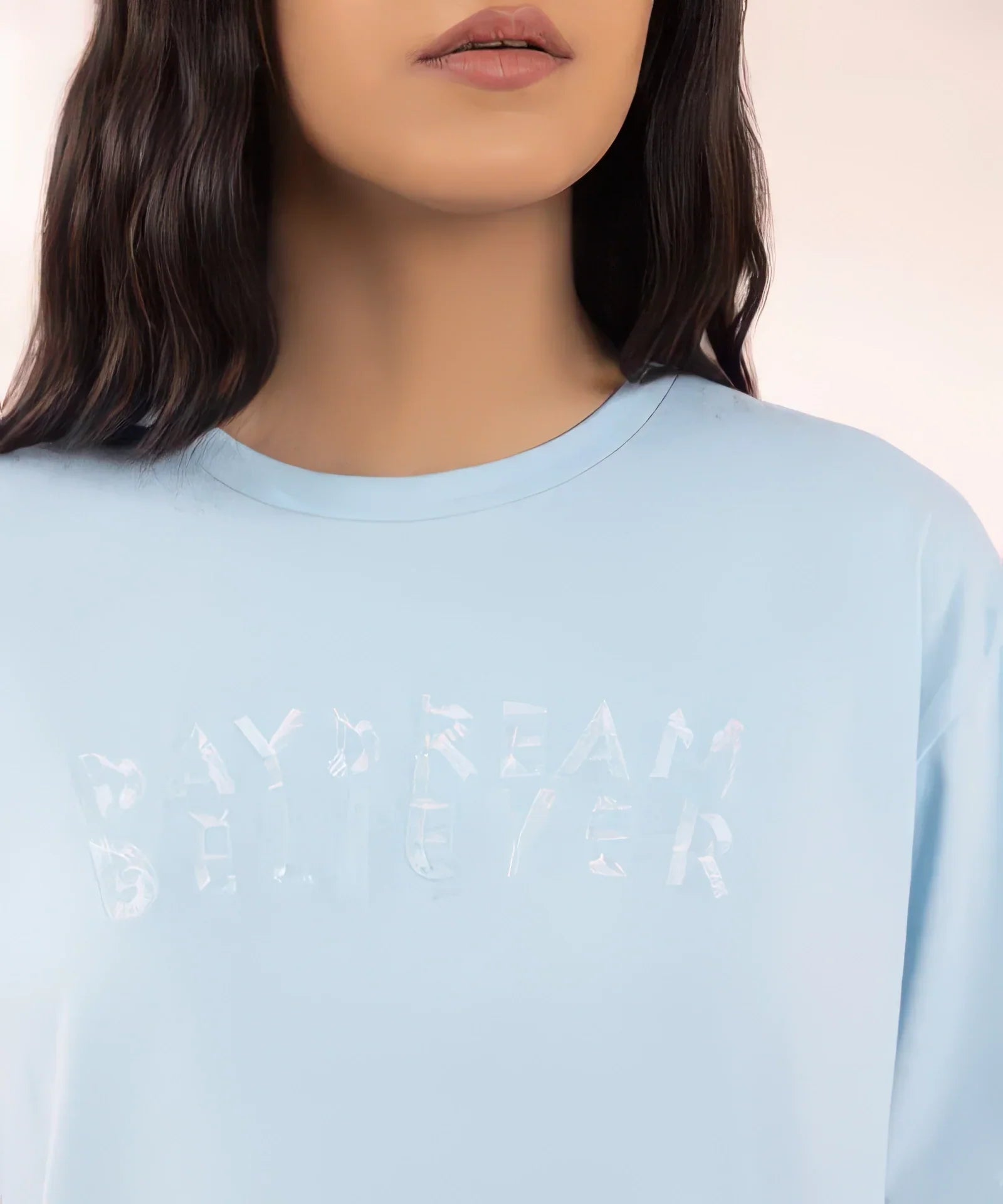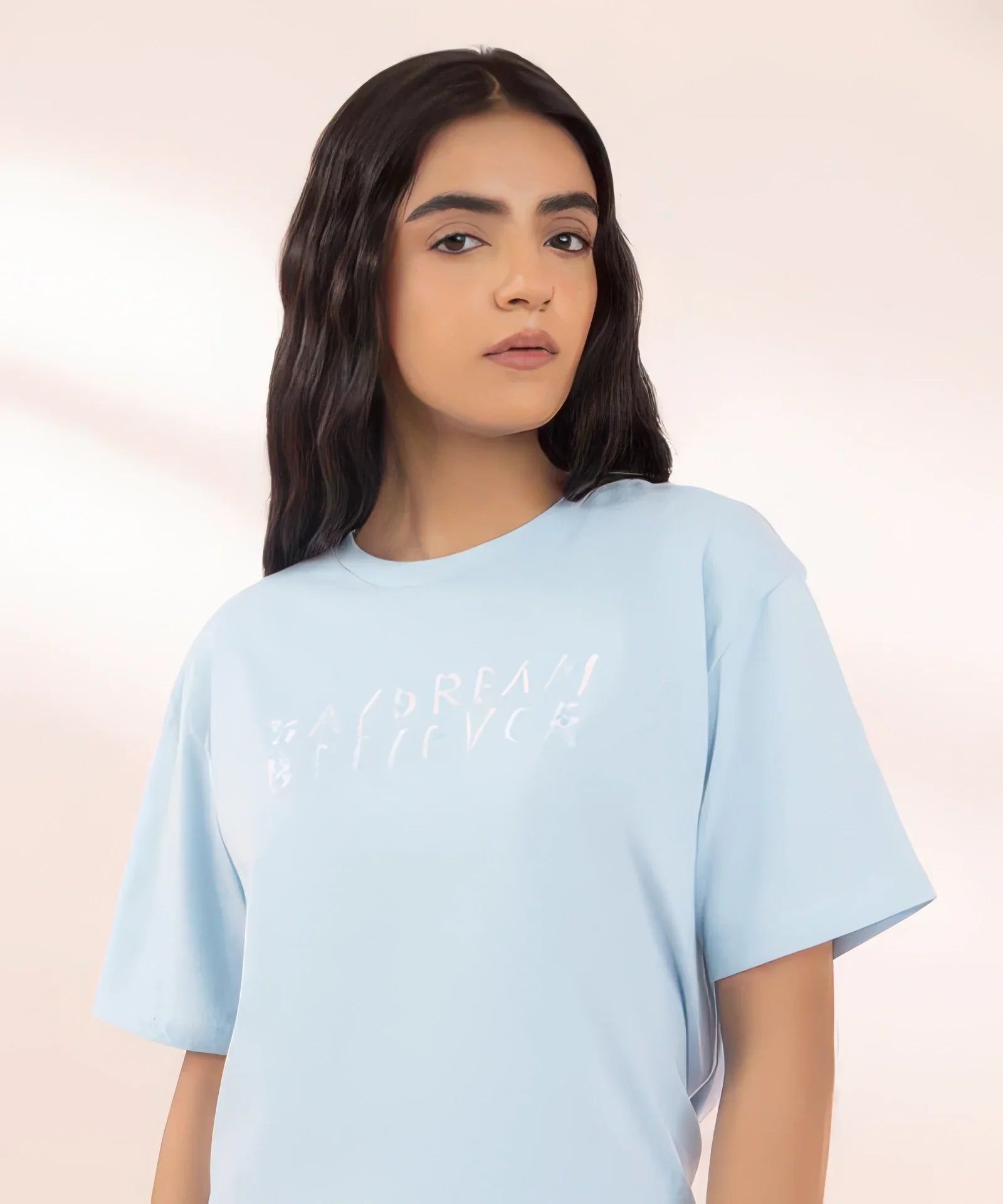 Solid loose fit T-shirt with embroidery. Crew neck with Short sleeves. Jogger pants with elasticated waistband and cuffs.