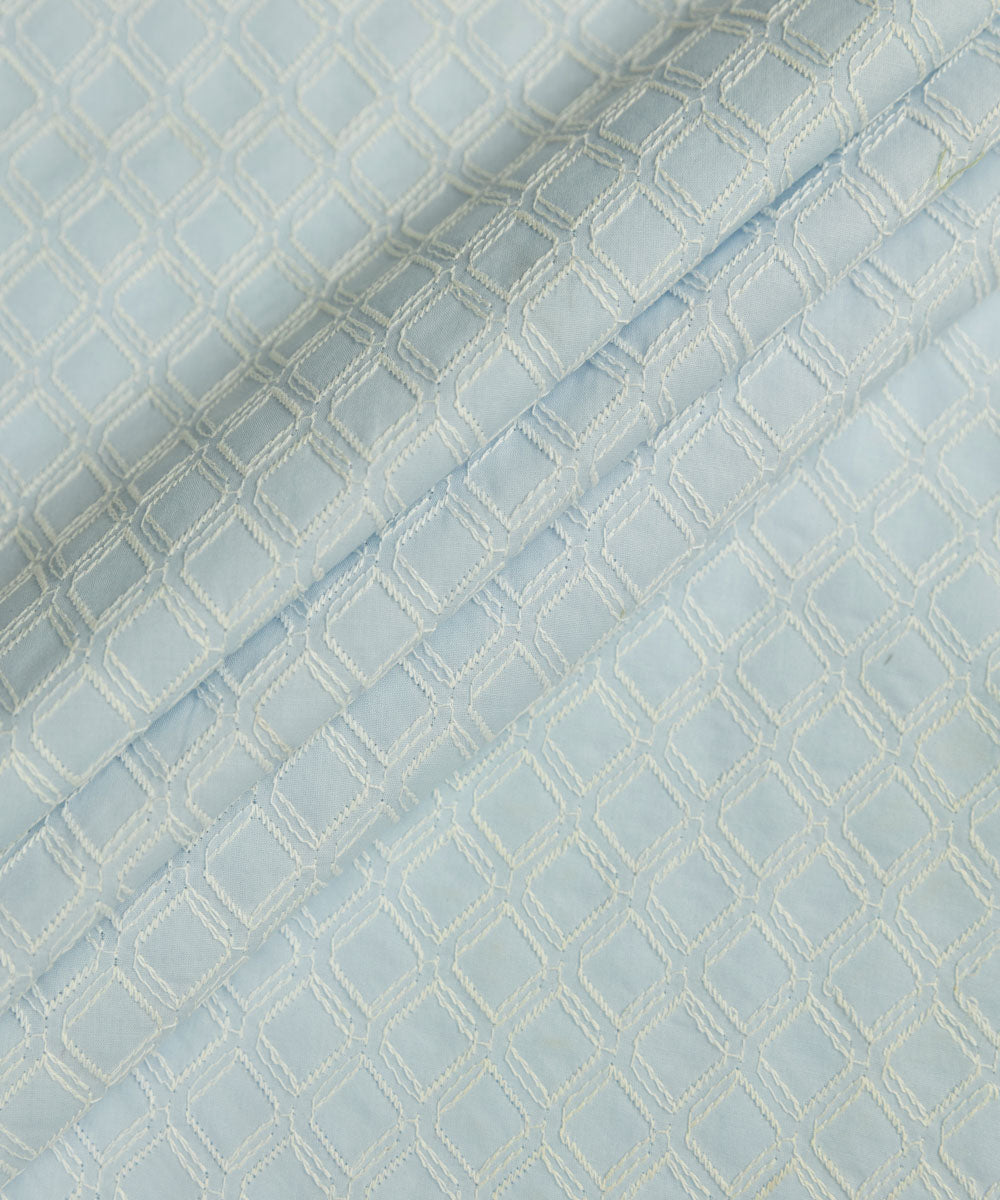 Look dapper this festive season with our light blue, embroidered cotton schiffli kurta.