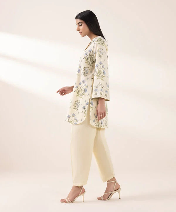 Embrace daily chic in our printed lime yellow A-line shirt with a ban neckline and slit.