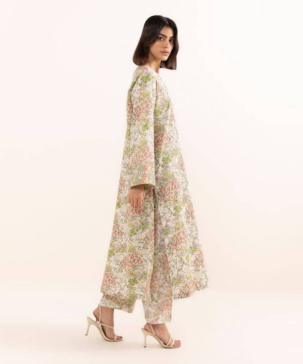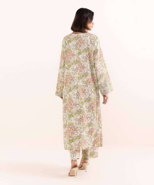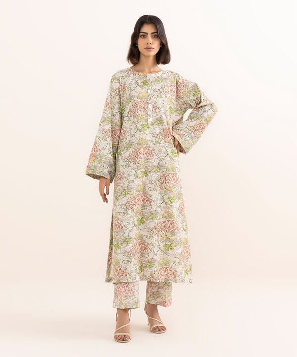 Printed Front Panel, Printed Back Panel, Round With Placket Neckline, Full Sleeves, Long Length