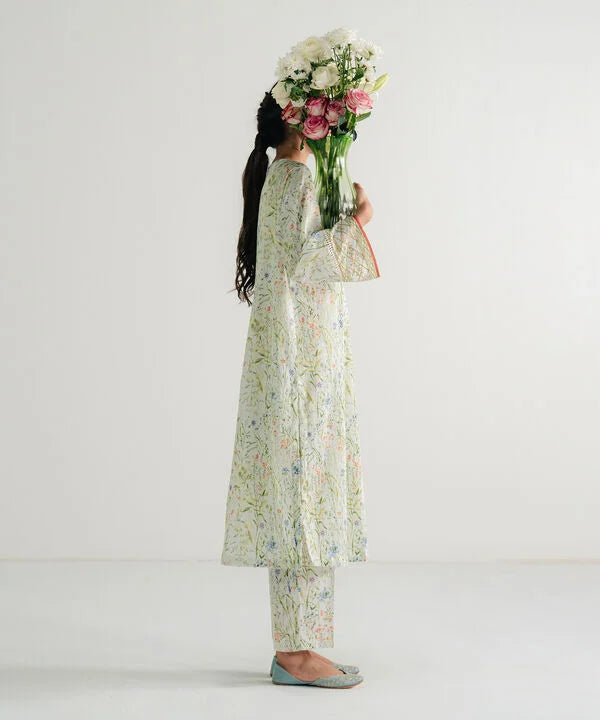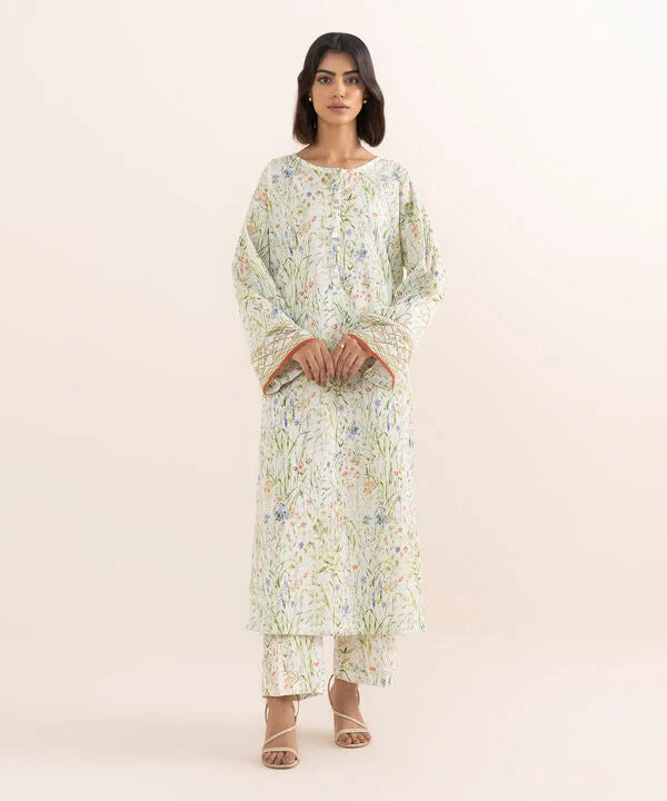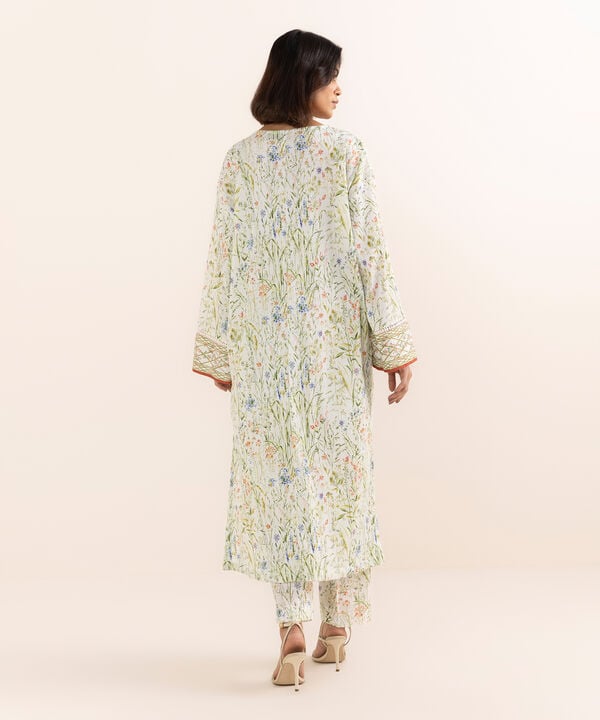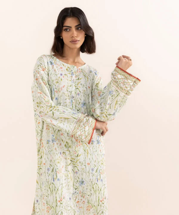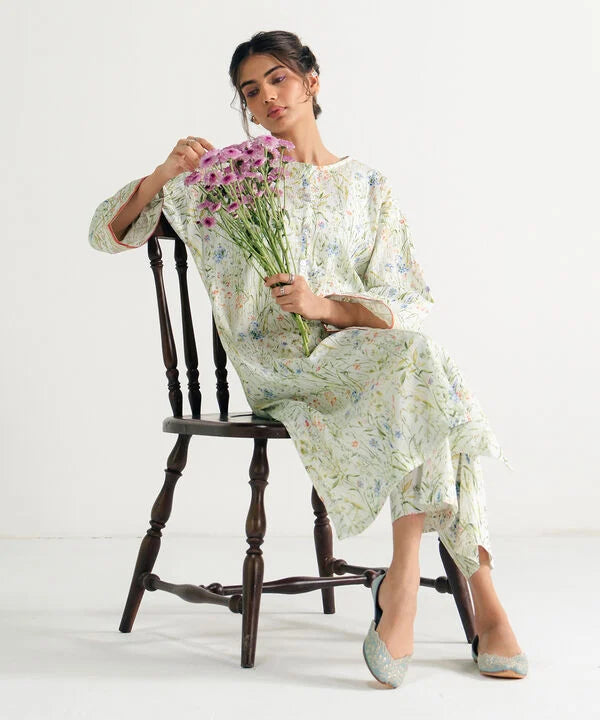 Printed Front Panel, Printed Back Panel, Round With A Placket Neckline, Full Sleeves, Long Length