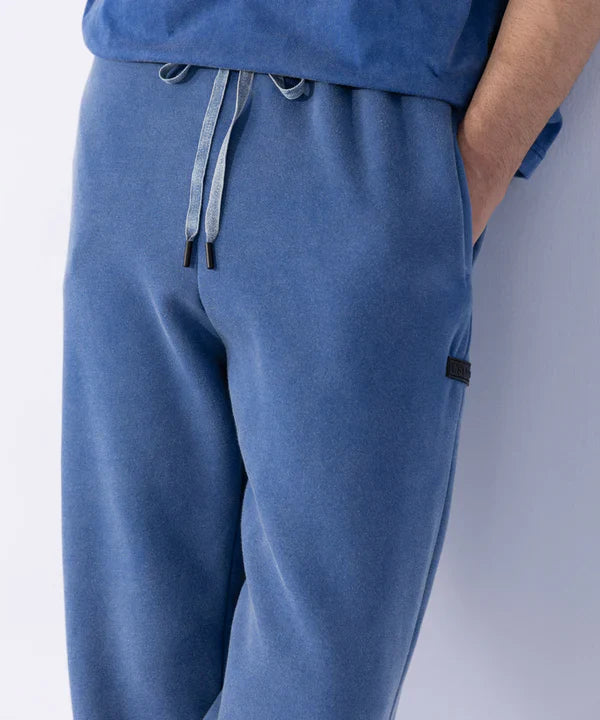 Fleece-back unisex jooging trousers with elasticated waist and drawcords. Side pockets. Cuffed hem. Rubber tag. Back patch pocket.