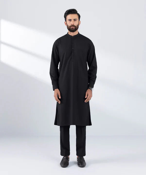 Make a sophisticated statement this season in our solid black, wash and wear kurta and trousers.
